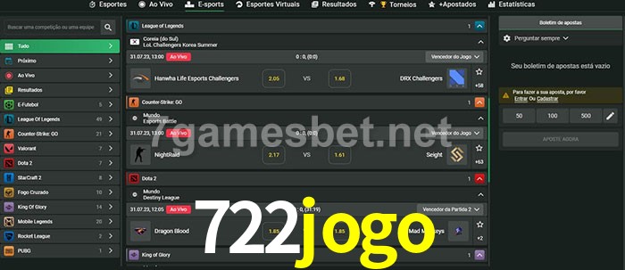 O 722jogo oferece uma grande seleção de opções de apostas em e-sports com probabilidades competitivas